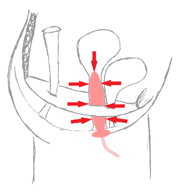 Imagine a pressure perineometer as a balloon filled with thousands of little “balls”, and as an external force is applied to the outer surface of the balloon, this drives some of the balls out of the balloon, up the tube, and into the measuring device/handset – indicating that something has occurred to cause a change in ball arrangement and number. This action is the same regardless of where the force is applied; at the end of the balloon; at the mid-point; at the base.